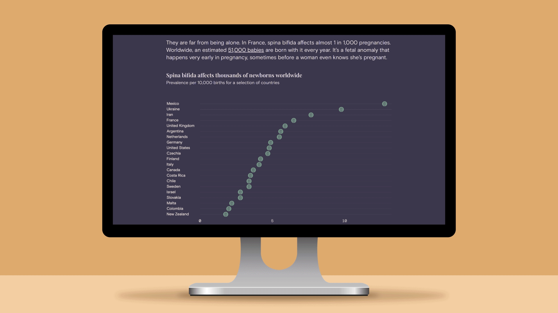 Last year, we started a pro bono initiative at Parabole: data storytelling pieces on topics that matter but don’t get enough attention. The first one we published was about spina bifida, one of the most common fetal anomalies that can turn your life upside down in 2 minutes. And it was incredibly personal to me.