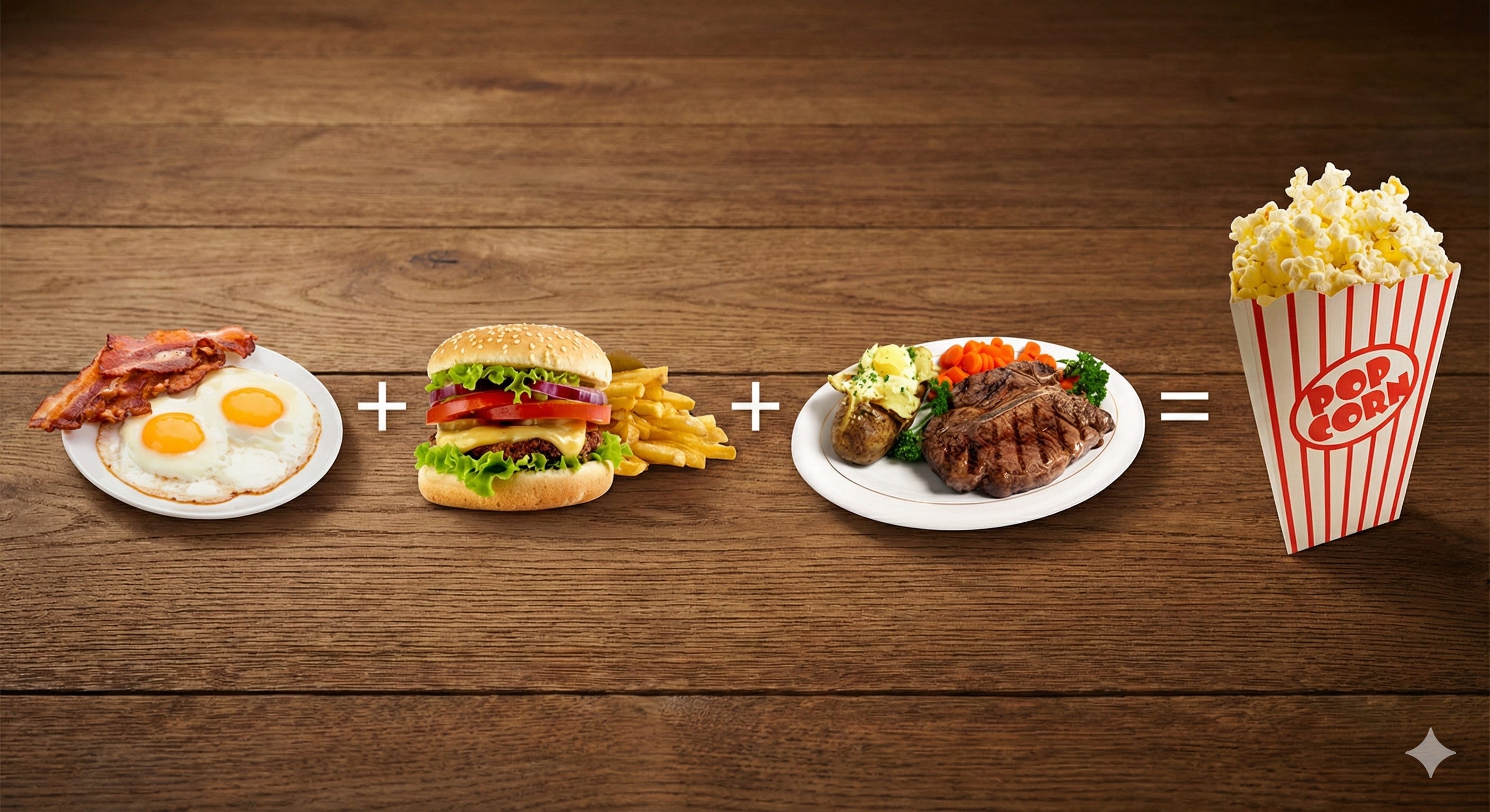 Instead, he called a press conference and announced the following: “A medium-sized popcorn at a typical movie theatre contains more artery-clogging fat than a bacon-and-eggs breakfast, a Big Mac and fries for lunch, and a steak dinner—combined!”